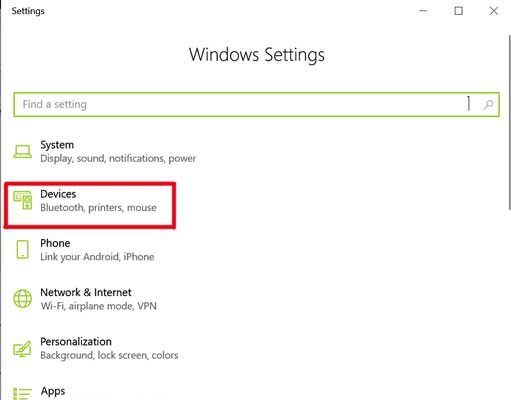 1- عبارت Setting را در منوی استارت جستجو کرده و یا با فشردن کلیدهای ترکیبی windows+I وارد تنظیمات ویندوز شوید.