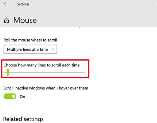 4- صفحه را اسکرول کرده تا گزینه Choose how many lines to scroll each time را مشاهده کنید.