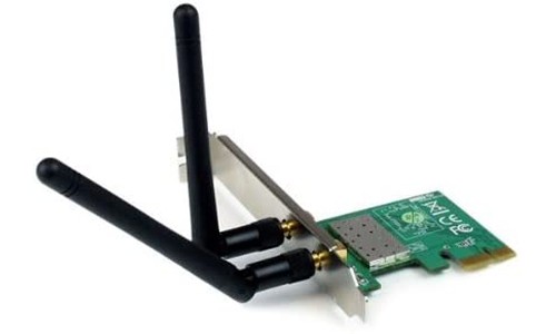 کارت شبکه وایرلس: کارت شبکه وایرلس کارتی اینترنال بوده که در داخل شیار مادربرد قرار می گیرد. این نوع کارت شبکه امکان اتصال بی سیم به اینترنت را برای شما فراهم می کند. دارای یک آنتن جهت دریافت سیگنال های روتر بوده و برای اتصال WIFI طراحی شده اند.
