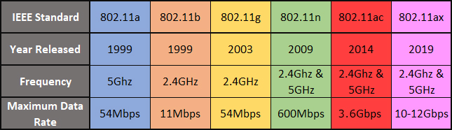 استاندارد کارت شبکه چیست و بر چه اساسی مشخص می شود؟ کارت های شبکه WIFI دارای استانداردی هستند که مشخصات آن ها را تعیین می کند. این استاندارد دارای طبقه بندی های a,b,g,n,ac است که در ادامه مشخصات هر یک را عنوان خواهیم کرد. دقت داشته باشید که استاندارد های a, b, g منسوخ شده اند و اکثر کارت های شبکه جدید دارای استاندارد نوع n و ac می باشند.