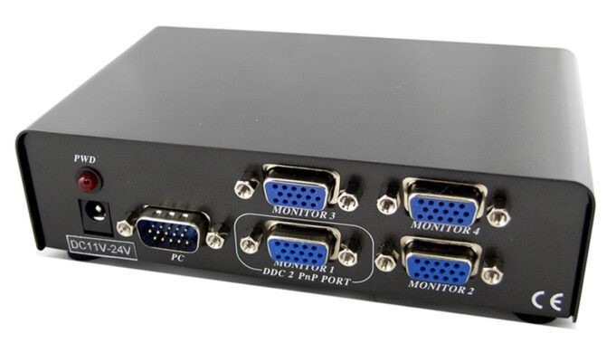 اسپلیتر VGA دارای یک ورودی و دو یا چند خروجی VGA است که این قابلیت را دارد تا یک پخش کننده را به دو یا چند نمایشگر متصل کند. به عنوان مثال زمانی که می خواهید یک کیس را به سه مانیتور وصل کنید، باید از یک اسپلیتر 1 به 3 VGA استفاده کنید.
