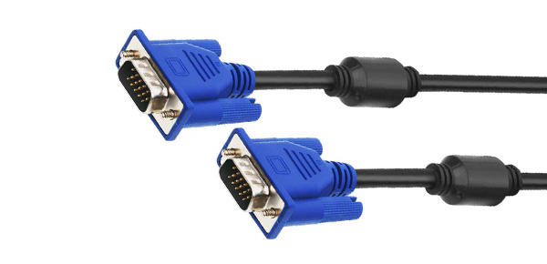 کابل VGA برای انتقال تصویر از کارت گرافیک به مانیتور مورد استفاده قرار می گیرد. دارای 15 پین بوده که در سه ردیف جای گرفته اند. هر ردیف از پین های آن یک رنگ را به نمایشگر انتقال می دهد، ردیف بالا رنگ قرمز، ردیف وسط رنگ سبز و ردیف پایین رنگ آبی را منتقل می کند. این کابل داده های تصویری را به صورت آنالوگ انتقال داده و در واقع جزء قدیمی ترین اتصالات ویدئویی می باشد.