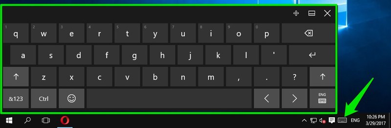 - با فعال شدن این گزینه، یک آیکون کیبورد در گوشه نوار ابزار مشاهده می کنید و تنها با یک کلیک بر روی آن، کیبورد لمسی ظاهر می شود.