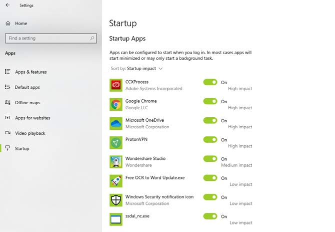 5- هرکدام از برنامه ها که اجرای آن ها هنگام روشن شدن سیستم ضروری نیست، غیر فعال کنید. توجه کنید که مواردی که به عنوان High impact مشخص شده اند، اولویت بیشتری دارند.