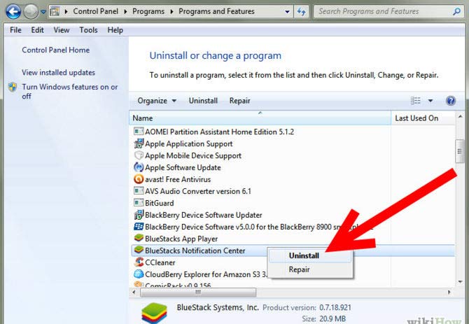 برای دیدن همه نرم افزارهای نصب شده بر روی ویندوز ، وارد Control Panel شده و از قسمت Programs گزینه Programs and Features را انتخاب کنید. سپس با کلیک راست بر روی هر یک از نرم افزارهایی که به آن ها نیاز ندارید و انتخاب Uninstall عملیات حذف را انجام دهید.