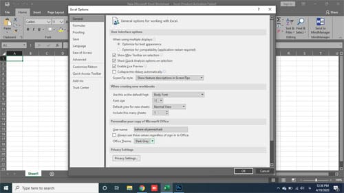 در اینجا ما به عنوان نمونه حالت دارک مود را روی برنامه اکسل فعال می کنیم. به همین ترتیب می توانید این حالت را برای دیگر برنامه های این مجموعه فعال کنید.