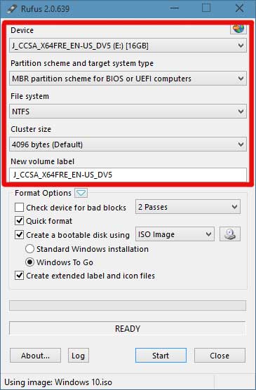 4- در مرحله چهارم آموزش بوت فلش برای نصب ویندوز، منوی File System را بر روی NTFS تنظیم کنید.