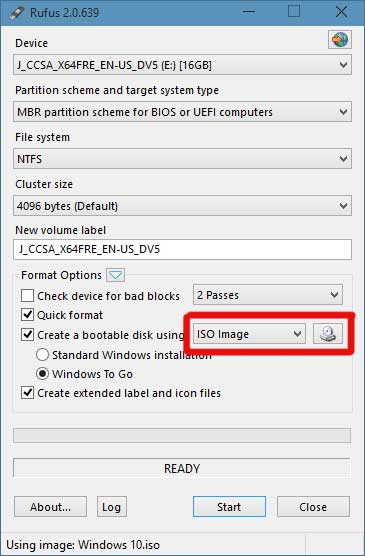 6- قسمت مشخص شده در تصویر زیر را که ورودی نرم افزار را تعیین می کند به ISO Image تغییر دهید.