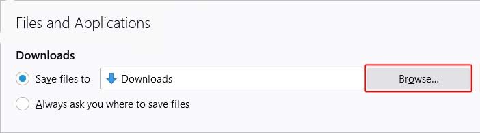 5- در قسمت Files and Applications بر روی دکمه Browse کلیک کنید.
