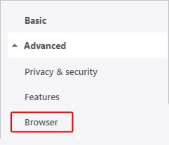 3- از منی Advanced بر روی Browser کلیک نمایید.