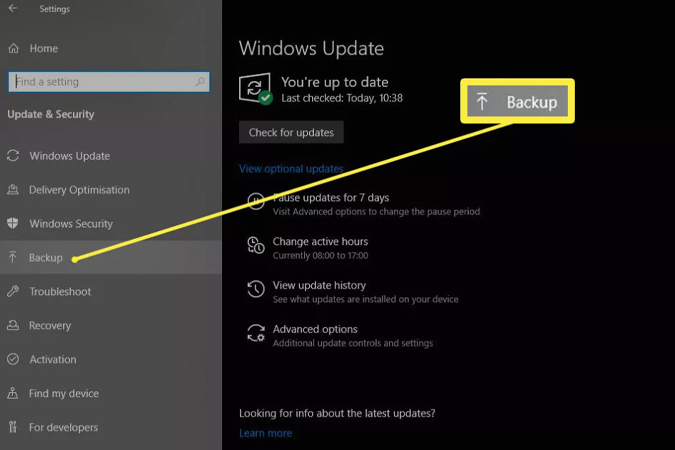 3- در پنجره باز شده گزینه Backup را از منوی سمت چپ باز کنید.