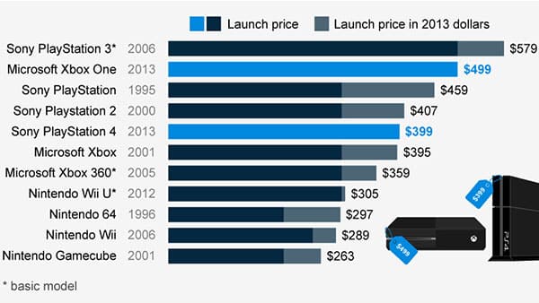 اگر به تعداد کنسول های فروخته شده هر شرکت نگاه کنیم، PS4 حدود دو برابر Xbox فروش داشته است. کنسولهای Playstation 4 در سه مدل معمولی، PS4 Slim و PS4 Pro و کنسول های بازی ایکس باکس در دو مدل Xbox One X و Xbox One S عرضه می شوند که با توجه به مدل ها و حجم های مختلف قیمت های متفاوتی دارند.