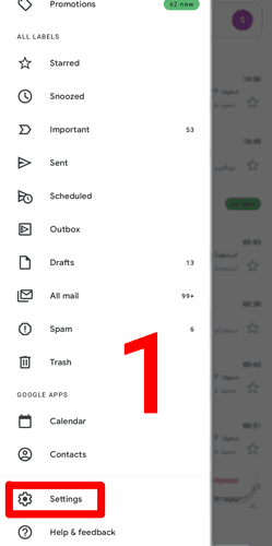 1- برنامه جیمیل خود را در موبایلتان باز کرده و به قسمت settings بروید.