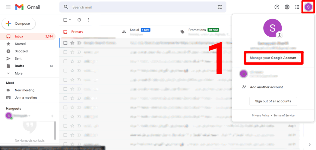 3- در منوی ظاهر شده Manage your Google Accoun را انتخاب نمایید.