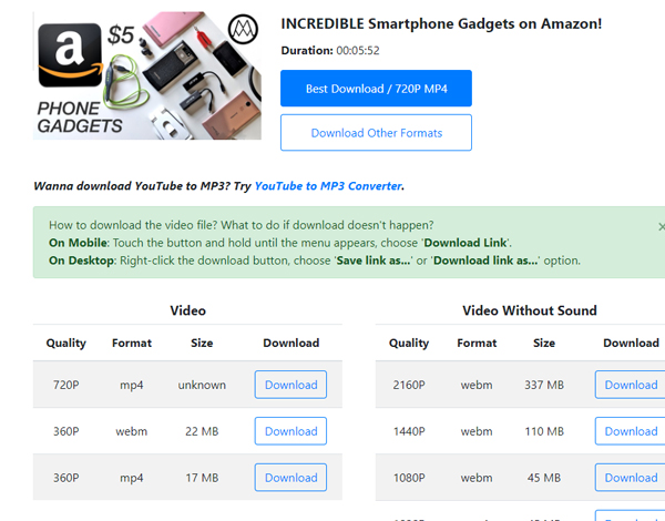- روی دکمه آبی رنگ با عنوان Best Download جهت دانلود با بهترین کیفیت و بر روی دکمه Download Other Format کلیک کنید.