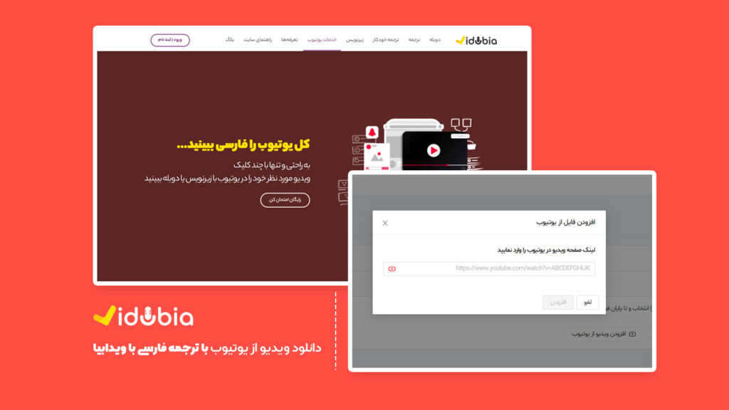 استارتاپ ویدابیا پلتفرمی را طراحی کرده است که شما برای ترجمه ویدیو های یوتیوب، حتی نیاز به دانلود از یوتیوب و آپلود کردن آنها ندارید؛ فقط کافیست پس از ثبت نام در سایت ترجمه و دوبله ویدابیا، لینک ویدیوی موردنظرتان از یوتیوب را کپی کرده و در محل مشخص شده پنل کاربریتان، جایگذاری (paste) کنید.