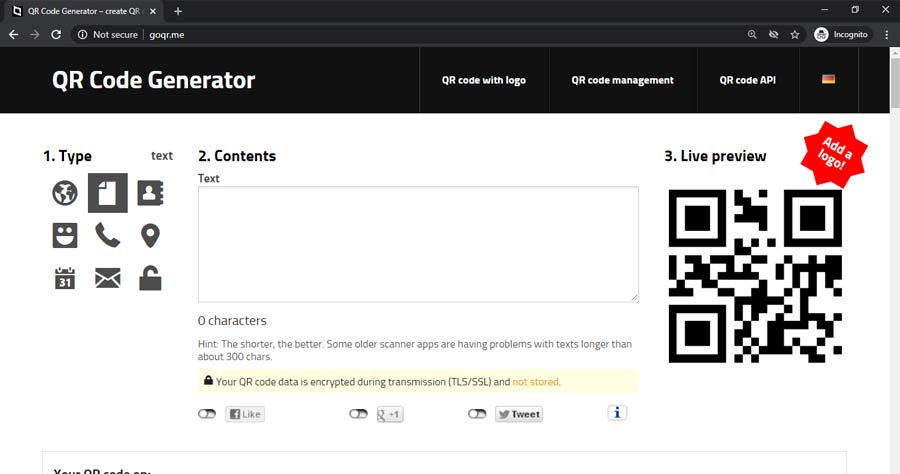 نکته : برای ساخت کیو آر کد می توانید از سایت هایی که به عنوان سازنده این امکان را در اختیار شما قرار می دهند، استفاده کنید. سایت های goqr.me و qr-code-generator.com دو نمونه از سایت هایی است که می توانید از آن برای ایجاد یک کد QR استفاده کنید.