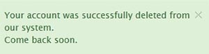 7- در آخرین مرحله از روش حذف اکانت تلگرام کمتر از یک دقیقه، برای اطمینان، مجدداً باید گزینه تأییدی را لمس کنید. با تأیید این گزینه اکانت شما به صورت کلی حذف خواهد شد و پیامی که در عکس می بینید را دریافت خواهید کرد.
