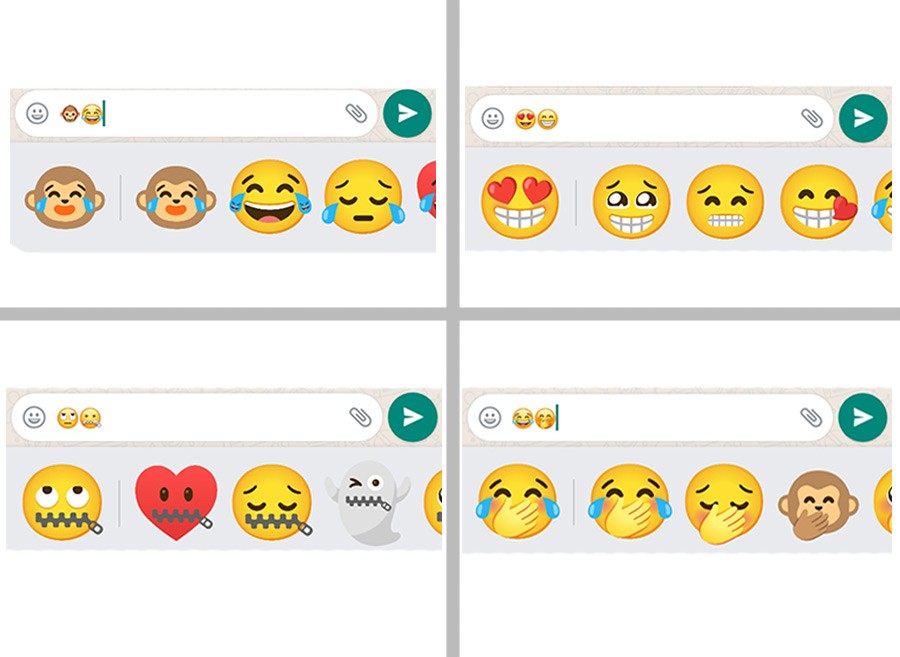 در تصویر زیر، چند نمونه از ترکیب ایموجی ها را با یکدیگر مشاهده می کنید. با این روش می توانید ایموجی هایی بسازید که هیچ یک از دوستان شما آن ها را ندیده اند.