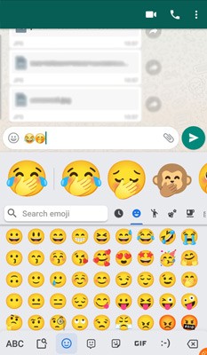 3- یکی از ایموجی ها را به دلخواه خود لمس کنید تا در قسمت تایپ، نمایان شود.