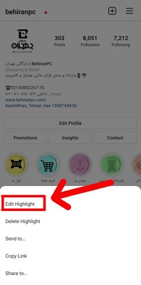 2- چند ثانیه هایلایت مورد نظر خود را لمس کنید. در این زمان منوی زیر را مشاهده خواهید کرد که باید گزینه Edit Highlight را انتخاب نمایید.