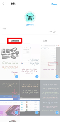 3- با انتخاب این گزینه، به صفحه ای هدایت می شوید که تمام استوری های هایلایت مورد نظر را در قسمت Selected مشاهده می کنید.