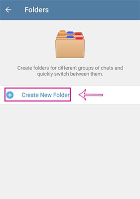 3- در این بخش اگر از قبل پوشه بندی داشته باشید می توانید مشاهده کرده و همچنین می توانید با ضربه بر روی Create New Folder پوشه جدید خود را اضافه کنید. در برخی از موارد این بخش دارای دو دسته پیش فرض می باشد. دسته پیام های خصوصی و خوانده نشده ها از جمله آن ها می باشد.