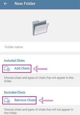 4- در این بخش می توانید برای پوشه جدید خود اسم انتخاب کرده و چت هایی را که می خواهید به آن اضافه کرده و یا حذف کنید.