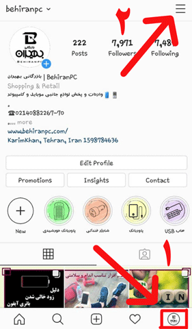– از صفحه پروفایلتان، علامت سه خط بالای صفحه را لمس کنید.