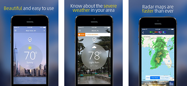 یکی دیگر از موارد لیست حرفه ای ترین برنامه هواشناسی اندروید Yahoo Weather است که احتمالاً بهترین آنهاست. این اپ از طراحی زیبا، اطلاعات ضروری هوا، هشدارهای هوا، رادار و موارد دیگر بهره می برد. قابلیت ردیابی تا 20 شهر را دارد. برنامه هواشناسی یاهو برای کاربران معمولی کافی می باشد و بدون خرید داخل برنامه رایگان است، اما تبلیغات دارد.