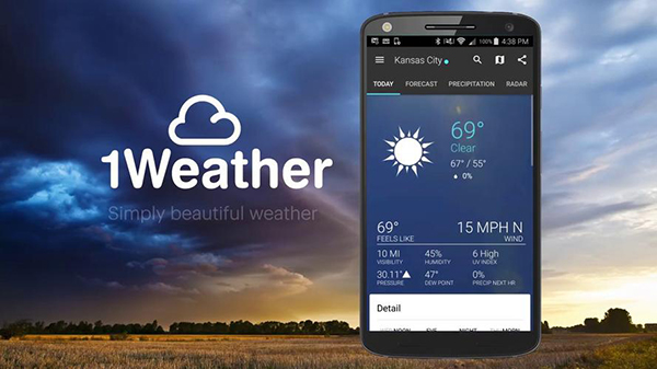 1Weather نه تنها یکی از محبوب ترین و حرفه ای ترین برنامه هواشناسی اندروید در این لیست است بلکه بالاترین امتیاز را نیز از دید کاربران دارد. دارای ویژگی های استاندارد یک برنامه پیش بینی آب و هوای روزانه و ساعتی است و علاوه بر آن از قابلیت های بیشتری نیز برخوردار است.