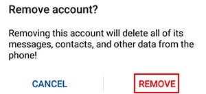 6- مجدداً از شما پرسیده می شود که از حذف این حساب جیمیل از روی موبایل خود اطمینان دارید یا خیر. در صورت انتخاب گزینه Remove، جیمیل به صورت کلی از تلفن همراه شما حذف خواهد شد و دیگر به پیام ها و اطلاعات آن دسترسی نخواهید داشت.