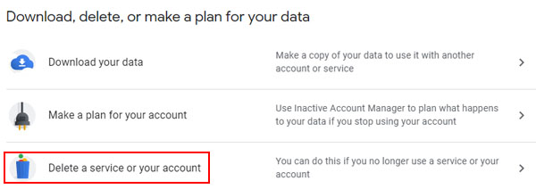4- در ادامه روی گزینه Delete a Services or your account کلیک کنید.