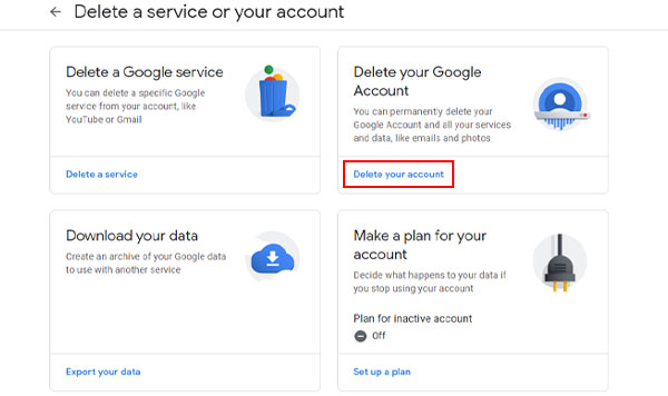 4- روی گزینه Delete your Google account کلیک کنید.