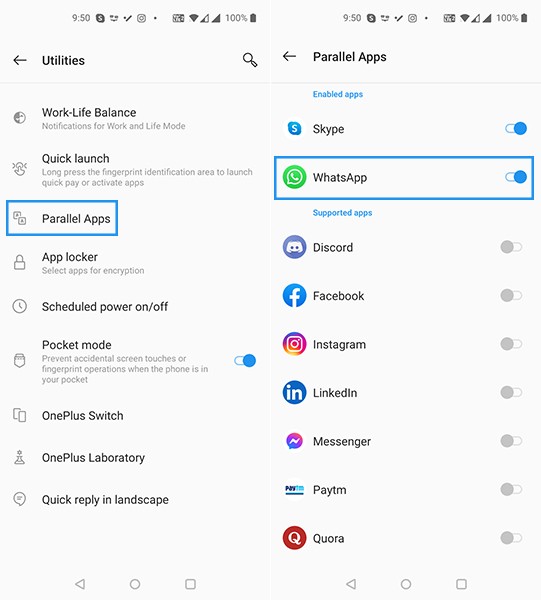 - گزینه Dual Apps و یا Parallel Apps را انتخاب نمایید.