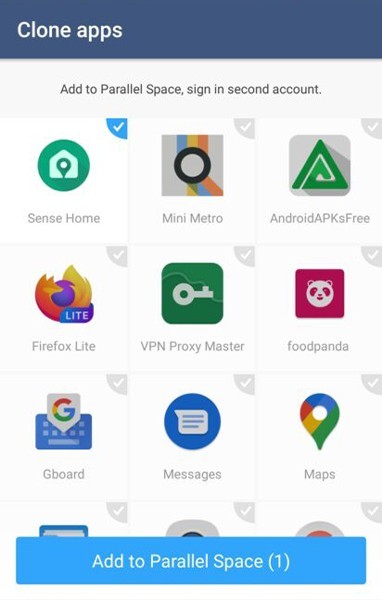 ممکن است موبایل شما قابلیت Dual Apps نداشته باشد. به این ترتیب نیاز به یک برنامه جانبی دارید که با استفاده از آن بتوانید امکان نصب دو برنامه مشابه در یک گوشی را داشته باشید. Parallel Space یکی از بهترین برنامه ها در این زمینه می باشد. این برنامه را از گوگل پلی استور دانلود و نصب کنید. پس از باز کردن برنامه باید اپلیکیشن مورد نظر خود را برای شبیه سازی انتخاب کنید. برای این کار گزینه Add to Parallel Space را انتخاب نمایید.