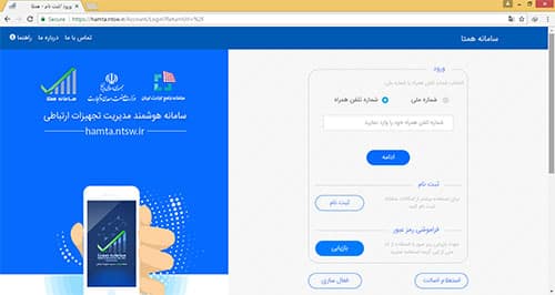 1- پس از ورود به سایت اینترنتی سامانه همتا به آدرس hamta.ntsw.ir باید در ابتدا ثبت نام کنید و سپس با استفاده از کد ملی و یا شماره تلفن همراه وارد سامانه شوید.