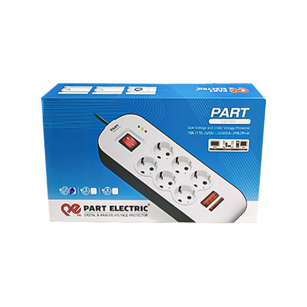 شش خانه برق ارت دار پارت مدل 658 کابل 3 متر