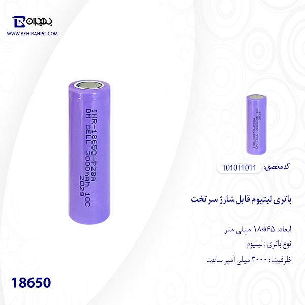 باتری لیتیوم قابل شارژ سر تخت 3000mAh 18650 18650-3000mah-battery