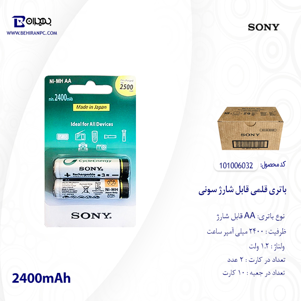 یکی از ویژگی های باتری های شارژی، قابلیت شارژ مجدد آنها می باشد که باعث جذب بسیاری از کاربران شده است. باتری قابل شارژ قلمی سونی با ظرفیت 2400MAH و ولتاژ 1.2 ولت در بسته بندی 2 عددی در بازار عرضه می شود. از باتری قابل شارژ قلمی سونی میتوان برای دسته های بازی، تجهیزات پزشکی، رادیو، کنترل، چراغ قوه، دوربین، اسباب بازی، موس، کیبورد و … استفاده کرد.