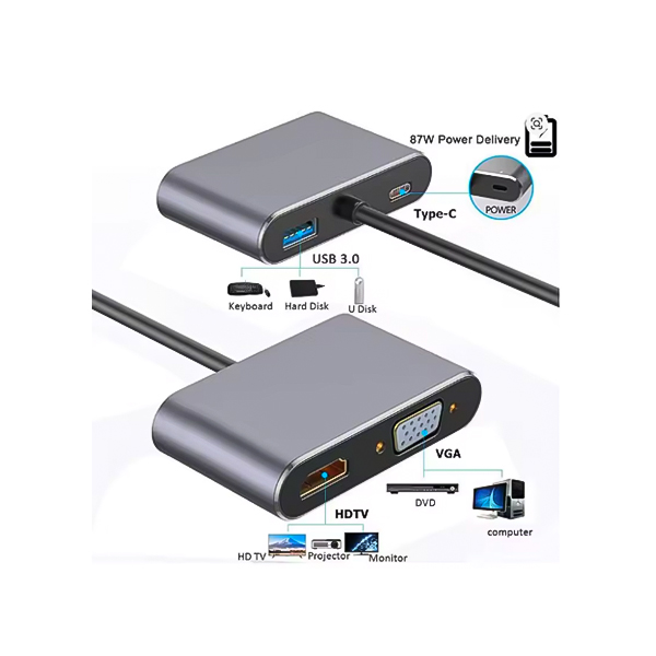 هاب کمبو تایپسی به PD/HDTV/VGA/USB یک ابزار کاربردی برای اتصال لپتاپها و دستگاههای مجهز به درگاه Type-C به چندین خروجی متنوع است. اگر لپتاپ شما تنها یک پورت USB-C دارد و به دنبال راهی برای گسترش درگاههای خروجی هستید، این هاب یک راهحل بسیار مفید و کمدردسر است.