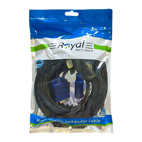 کابل VGA رویال مدل 027 طول 5 متر در هر دو سمت دارای پورت VGA بوده و می توانید آن را به دستگاه های مختلفی مثل مانیتور، ویدئو پروژکتور، کیس و… متصل کرده و عملیات انتقال تصویر را انجام دهید.