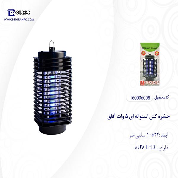 حشرهکش استوانهای 5 وات آفاق یک دستگاه موثر و کممصرف برای از بین بردن حشرات مزاحم مانند پشه و مگس است. این دستگاه دارای طراحی استوانهای با ابعاد 10*22 سانتیمتر بوده و از 8 لامپ LED UV بهره میبرد که با جذب حشرات آنها را به سمت شبکه 500 ولتی هدایت میکند. توان 5 وات آن، مصرف انرژی پایینی را تضمین میکند و به راحتی به برق 220 ولت و فرکانس 50 هرتز متصل میشود. این حشرهکش انتخاب مناسبی برای استفاده در محیطهای داخلی و خارجی است و به کمک تکنولوژی نور UV، بدون نیاز به مواد شیمیایی حشرات را به دام میاندازد.