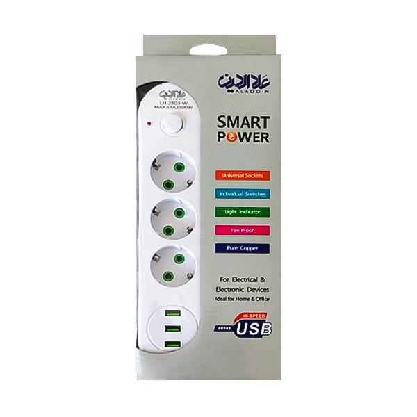 این سه خانه برق علاالدین مدل LH-2803 کابلی 1.8 متری دارد که از سه پریز با مغزی مسی و سه پورت USB تشکیل شده است. این سه خانه برق به گونه ای طراحی شده که میتوان به طور همزمان از هر سه پریز و پورت USB آن استفاده کرد. جنس بدنه ی آن از پلاستیک ساخته شده تا در برابر رطوبت و ضربه مقاوم باشد و هم به عنوان عایق، ایمنی را افزایش دهد. این سه خانه برق دارای واکرسوئیچ می باشد که می توان به راحتی آن را خاموش و روشن کرد.