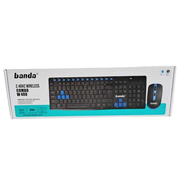 کیبورد و ماوس بی سیم باندا مدل W400 با بدنه ای از جنس پلاستیک ABS عرضه شده است. کیبورد W400 شرکت باندا از یک باتری قلمی مدل AA و ماوس آن از دو باتری قلمی مدل AAA تغذیه می کنند.