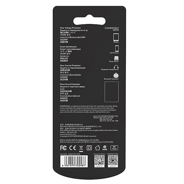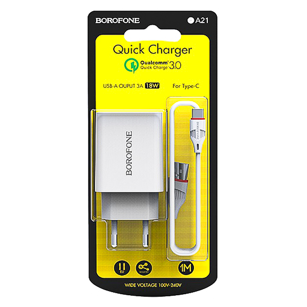 شارژر و کابل USB به Type-C بروفون مدل BA21 A با شدت جریان خروجی 3.0، 2.0 و 1.5 آمپر برای شارژ انواع موبایل های با درگاه Type-C مورد استفاده قرار می گیرد. شدت جریان این شارژر با توجه به نوع موبایل شما به صورت خودکار تغییر خواهد کرد. کابل همراه این محصول دارای طول 1 متر است.