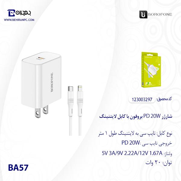 شارژر دیواری PD 20W بروفون مدل BA57 همراه با کابل لایتنینگ عدد