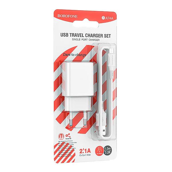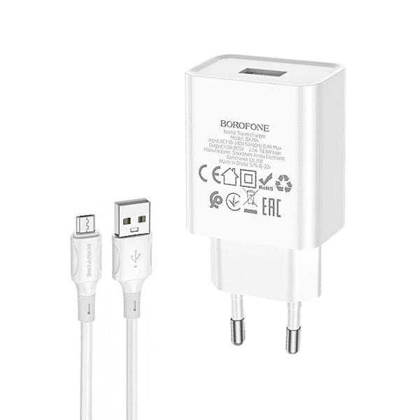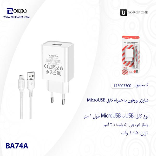 شارژر دیواری بروفون مدل BA74A به همراه کابل MicroUSB borofone-ba74a-wall-charger