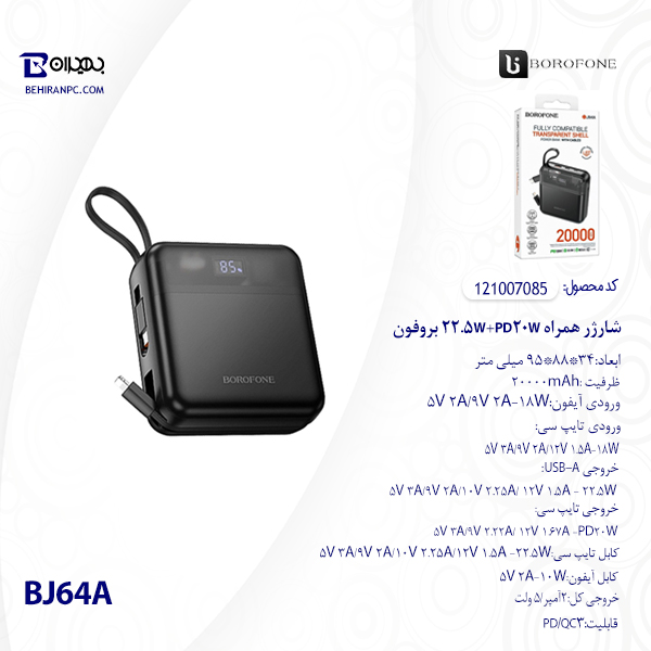 شارژر همراه 22.5W+PD20W بروفون مدل BJ64A ظرفیت 20000mAh