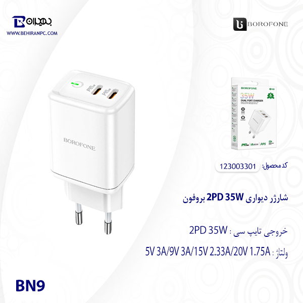 شارژر دیواری 2PD 35W بروفون مدل BN9 borofone-bn9-2pd-35w-wall-charger